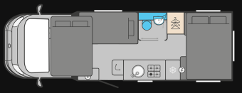 Explore the features of the Swift Voyager 475 4 Berth below. We have also included pictures of the day and night mode of the motorhome so you can visualise the layout. Please note that there are only 4 seatbelts and not 5 as shown in the daytime image.
